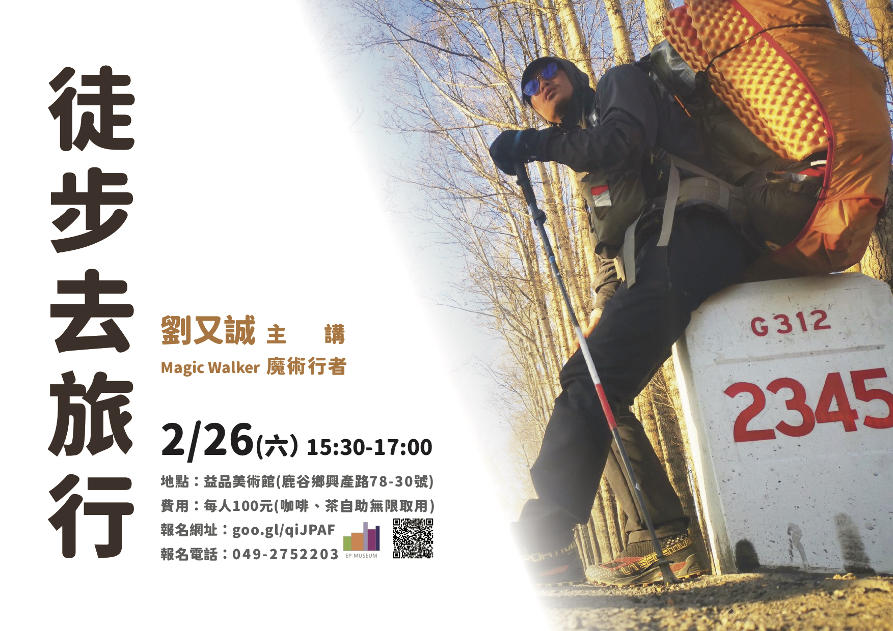 劉又誠 魔術行者將於2/26禮拜六下午15:30-17:00至益品美術館分享他的旅行故事。